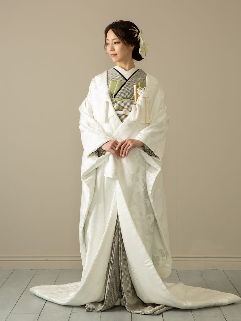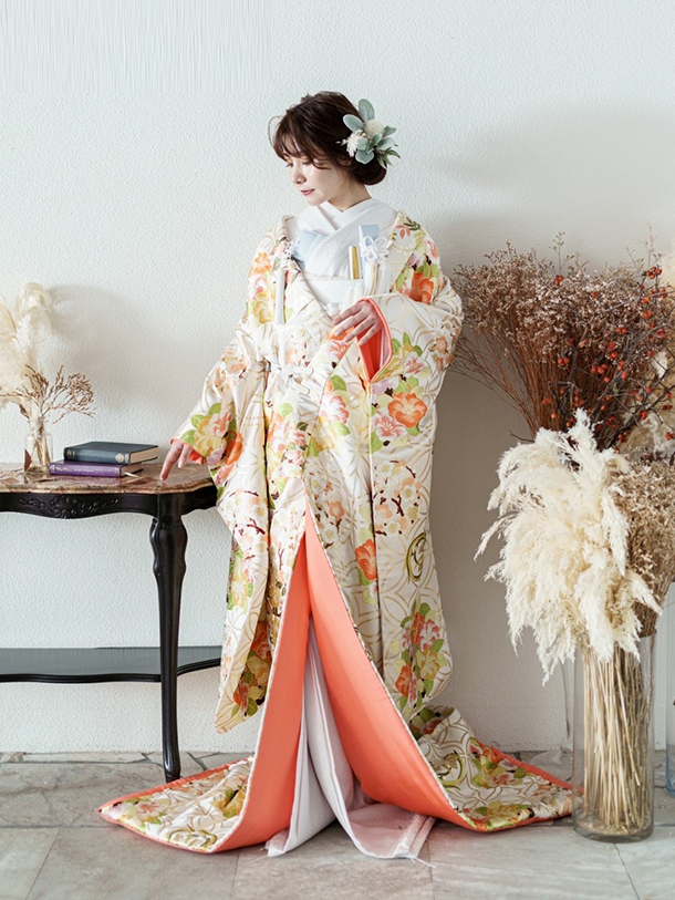 - ウエディングドレス・カラードレス・白無垢・色打掛・掛下・刺繍襟まで、新作衣装40着以上の中からセレクト可能です。