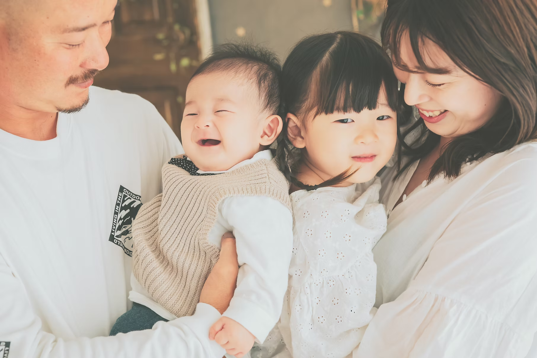 一人写りはもちろん、兄弟姉妹との撮影やご家族写真もニューボーンフォトの大切な思い出。
