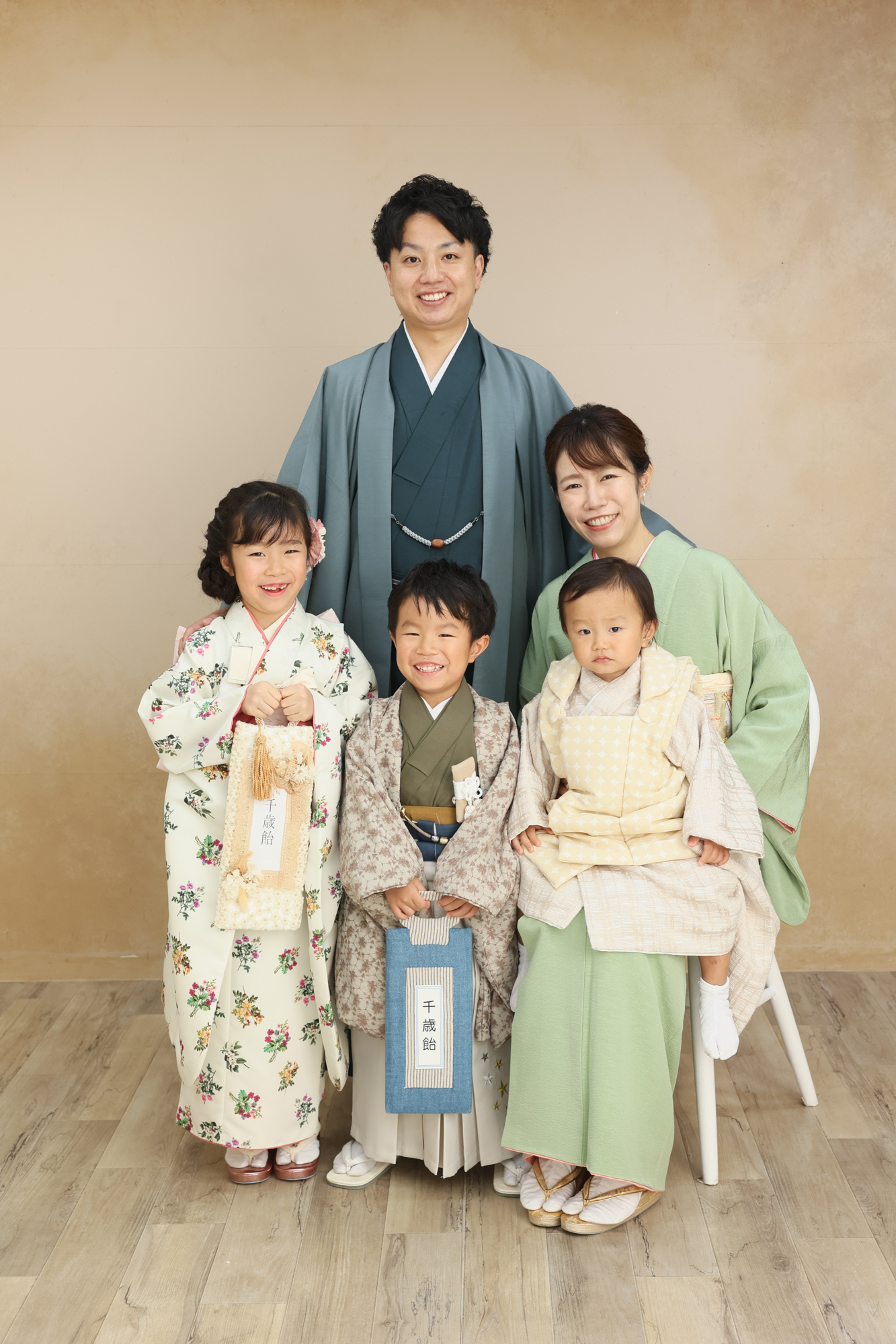 主役のお子様が入ってらっしゃるカットであれば、ご家族やごきょうだいとのショットも追加料金なしで撮影させて頂いておりますので、ぜひこの機会にお祝いを兼ねご一緒に撮影下さいませ。