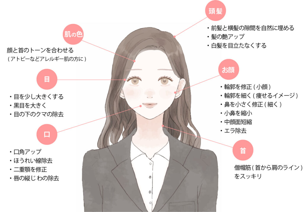 過度な修正にならない用途にあった違和感のない仕上げをご案内します。