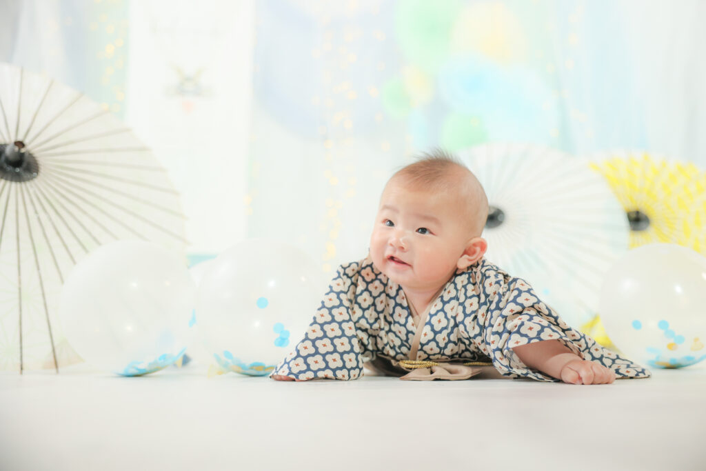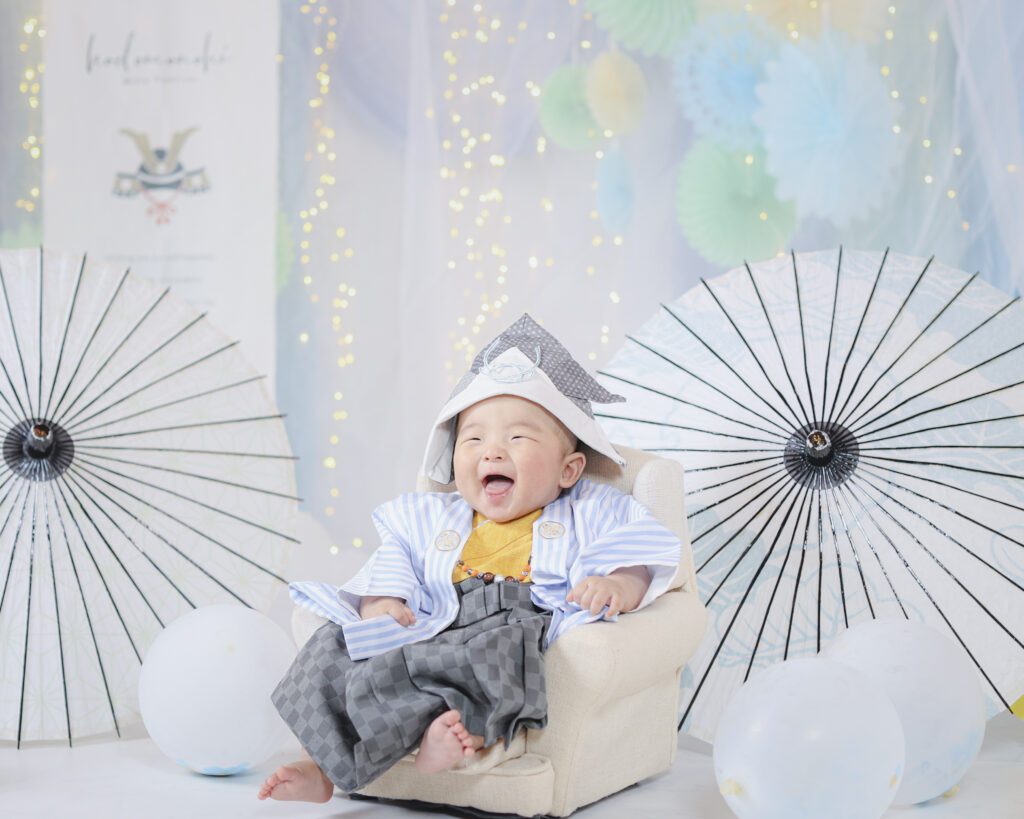 男の子の成長を願う端午の節句。店舗にある兜や和傘などアイテムは無料でお使いいただけます。ご自宅でおじいちゃん、おばあちゃん、親戚みんなで一緒に撮影したり、笑顔になったりする瞬間は、家族みんなの心に残ります。